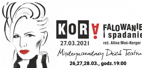Na scenie zobaczymy Żanettę Gruszczyńską-Ogonowską, Wojciecha Kowalskiego i Artura Czerwińskiego, a także Bernadettę Bursztę, Adriannę Jendroszek, Dominikę Mrozowską-Grobelną, Beatę Niedzielę oraz Katarzynę Ulicką-Pydę. Spektakl “Kora. Falowanie i spadanie” reżyseruje Alina Moś-Kerger, która w BTD kilka lat temu zrealizowała spektakl “Dziękuję za różę”. Autorem scenariusza jest Tomasz Ogonowski, któremu reżyserka udzieliła konsultacji dramaturgicznych. Za kostiumy i scenografię odpowiada Natalia Kołodziej, za ruch sceniczny Bartosz Bandura, a za opracowanie muzyczne Maciej Osada-Sobczyński.