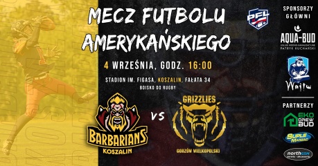 Zapraszamy na pierwszy mecz domowy w sezonie 2021 w ramach Polskiej Futbol Ligi 9, w którym Barbarians Koszalin zmierzy się z Grizzlies Gorzów Wlkp.