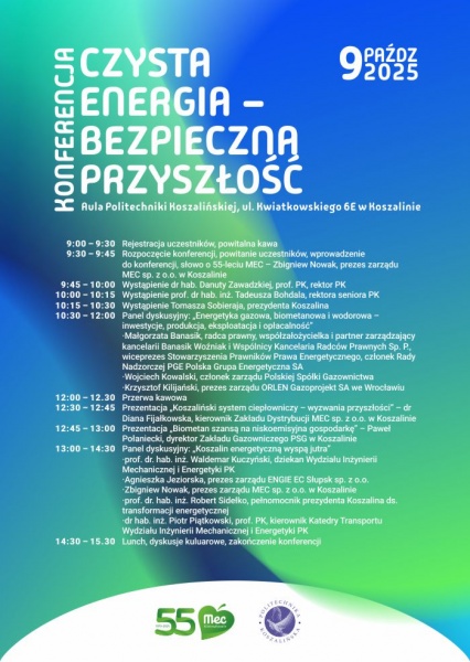 Spotkanie będzie także okazją do uczczenia 55-lecia Miejskiej Energetyki Cieplnej w Koszalinie, która od ponad pół wieku odpowiada za bezpieczeństwo energetyczne mieszkańców.