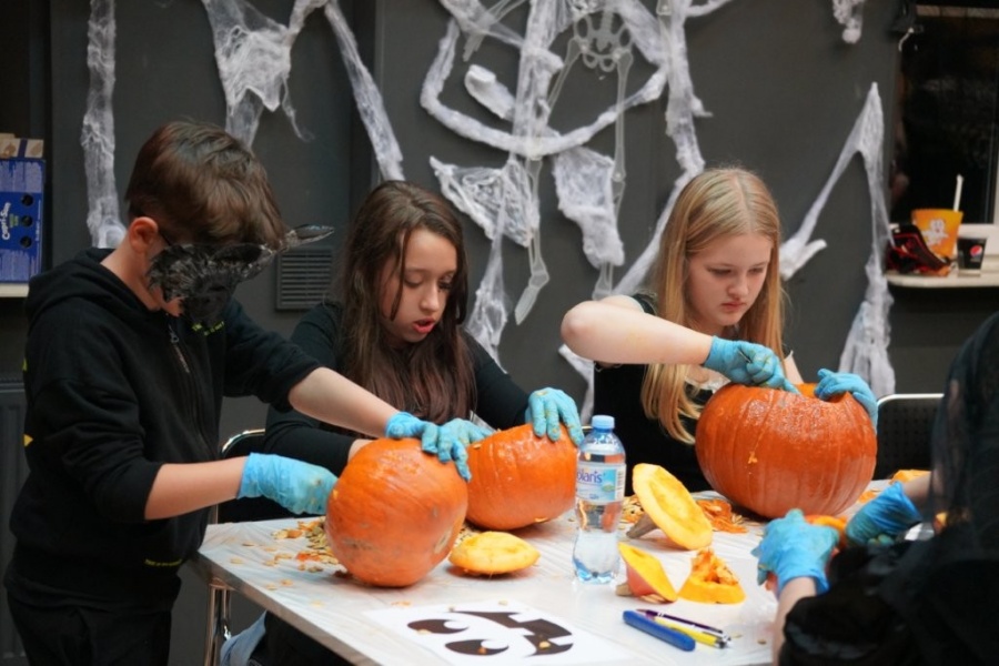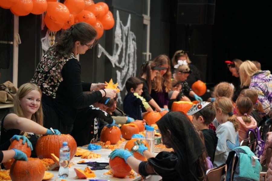 Podczas gdy dorośli oglądają film, w sąsiedniej sali dzieci będą mogły wziąć udział w warsztatach wycinania dyni.