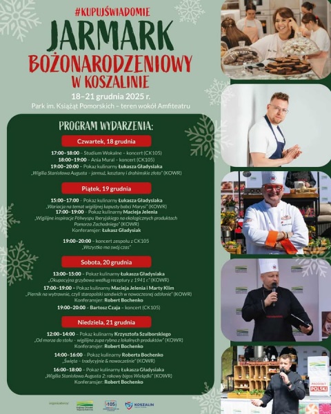Jarmark Bożonarodzeniowy 2025 zapowiada się jako jedno z najpiękniejszych wydarzeń zimy w Koszalinie — pełne światła, tradycji i przedświątecznego nastroju.