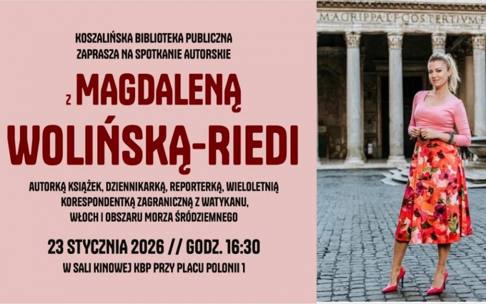 Magdalena Wolińska-Riedi jest autorką m.in. książki „Kobiety w Watykanie”, w której przybliża mało znane historie i role kobiet funkcjonujących w watykańskiej rzeczywistości. Podczas spotkania opowie również o swojej najnowszej publikacji „Rzym od kuchni” – pełnej anegdot, obserwacji i rzymskiej codzienności widzianej z perspektywy reporterki.