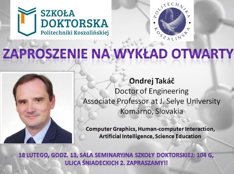 Gościem wydarzenia będzie prof. Ondrej Takáč – Doctor of Engineering, Associate Professor na J. Selye University w Komárnie (Słowacja). Podczas wykładu i spotkania prof. Takáč opowie o swoich aktualnych zainteresowaniach badawczych, przedstawi profil swojej uczelni, a także wskaże możliwe kierunki współpracy – zarówno w obszarze badań naukowych, jak i inicjatyw dydaktycznych oraz projektów międzynarodowych.
