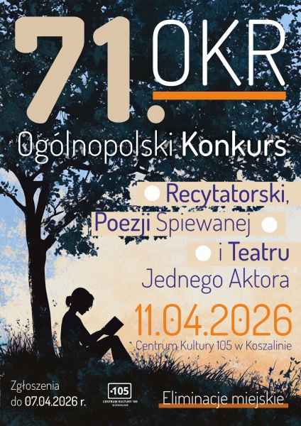 Eliminacje odbędą się 11 kwietnia 2026 roku w Centrum Kultury 105 w Koszalinie, a zgłoszenia przyjmowane są do 7 kwietnia. Uczestnicy mogą wybierać spośród kilku form konkursowych, w tym Turnieju Recytatorskiego, Turnieju Wywiedzione ze Słowa, Turnieju Teatru Jednego Aktora oraz Poezji Śpiewanej.