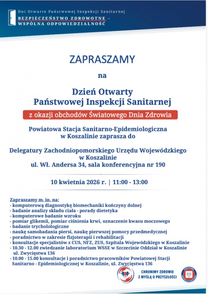 Dzień Otwarty Inspekcji Sanitarnej w Koszalinie organizowany jest z okazji obchodów Światowego Dnia Zdrowia. Państwowy Powiatowy Inspektor Sanitarny w Koszalinie zaprasza mieszkańców do udziału w akcji, która ma na celu promocję zdrowia i profilaktyki, ze szczególnym uwzględnieniem potrzeb seniorów.