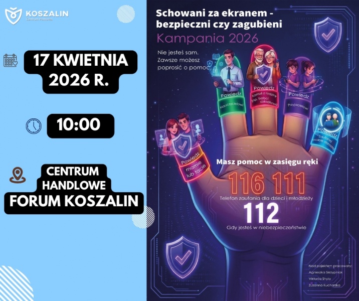 Ważnym elementem kampanii będzie również wystawa prac dzieci i młodzieży, prezentowana w Forum Koszalin od 17 do 24 kwietnia 2026 roku. Ekspozycja obejmie 12 nagrodzonych prac powstałych w ramach konkursu towarzyszącego I Kongresowi Cyberbezpieczeństwa „Odpowiedzialny Rodzic”. Prace te pokazują spojrzenie młodych ludzi na świat ekranów, internetu i mediów społecznościowych, a zarazem stanowią mocny i autentyczny głos w debacie o współczesnym dorastaniu.