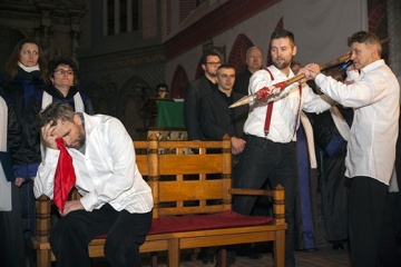 "Historia o królu Dawidzie" to współcześnie potraktowana forma oratorium, informująca o stworzeniu świata, życiu i twórczości Dawida króla aż po zmartwychwstanie Jezusa Chrystusa. Zespół prezentuje psalmy w parafrazie Jana Kochanowskiego i poetów współczesnych, natomiast aktorzy przedstawiają sceny z życia króla Dawida. Spektaklowi towarzyszy muzyka organowa w wykonaniu Pawła Mielcarka. Scenariusz, reżyseria oraz scenografia w wykonaniu Wandy Korobowicz, Marcina Medzińskiego. Wstęp wolny, ilość miejsc ograniczona.