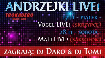 Sobotnią noc ubarwi z kolei saksofonista Mafi. Jego niepowtarzalny styl „rozrywkowej improwizacji” w połączeniu z klubowym miksem przebojów ostatniego pięćdziesięciolecia, sprawi że imieniny Andrzeja w Trokadero, staną się najgorętszym party w mieście.