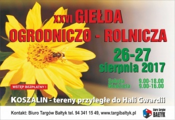 wój udział zapowiedzieli wystawcy z całego kraju. Podobnie jak w latach ubiegłych szeroko zaprezentuje się branża ogrodnicza. Zbliżająca się jesień to dobra pora na zmiany, czyli sadzenie, rozmnażanie, przesadzanie. Zatem, giełda będzie doskonałą okazją aby bezpośrednio od producentów, po atrakcyjnych cenach kupić m.in. drzewka owocowe i ozdobne, krzewy jagodowe, rośliny iglaste produkowane w donicach, pnącza ozdobne i owocujące, cebule i kłącza kwiatowe, sadzonki truskawek i poziomek, byliny rabatowe, rośliny wrzosowate i trawy ozdobne a także nasiona również profesjonalne. Warto również wykorzystać obecność doświadczonych ogrodników i firm zajmujących się aranżacją terenów zielonych i skorzystać z ich porad. Będą dostępne bezpłatne publikacje – poradniki przeznaczone dla branży rolniczej.
