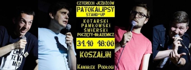 Sobota, 31 października w Kawałku Podłogi będzie okazją do kolejnego spotkania z wykonawcami działającymi na scenie stand – upowej. Tym razem publiczność bawić będą chłopcy z Torunia, czyli: Piotr Pawłowski, Mateusz Świerski, Jakub Poczęty-Błażewicz i Hubert Kotarski.