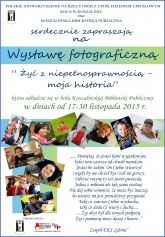 Warsztat Terapii Zajęciowej Nr 1 działający przy Polskim Stowarzyszeniu na Rzecz Osób z Upośledzeniem Umysłowym Koło w Koszalinie zaprasza w dniach 17-30.11.2015 roku do Galerii Regionalnej w Koszalińskiej Bibliotece Publicznej na wystawę fotograficzną poświęconą życiu i pasji osób z niepełnosprawnością intelektualną.