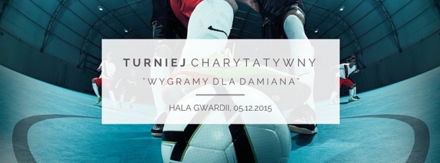 Zapraszamy na charytatywny turniej piłki nożnej “WyGramy dla Damiana”. Udział w nim wezmą cztery drużyny: 1. Przyjaciele Damiana - kapitan Marcin Kępka, 2. Samorządowcy - kapitan Sebastian Tałaj (drużyna złożona z polityków, urzędników oraz nauczycieli), 3. Dziennikarze - kapitan Piotr Pawłowski, 4. Przedsiębiorcy - kapitan Marek Paszkowski (ojciec Damiana). Turniej odbędzie się na Hali Gwardii w Koszalin w dn. 5 grudnia od godz. 10:00 do godz. 12:30.