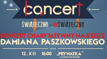 W klubie Prywatka odbędzie się koncert charytatywny na rzecz Damiana Paszkowskiego. Jak można przeczytać w zaproszeniu zabrzmią świąteczne i nieświąteczne hity muzyki popularnej.