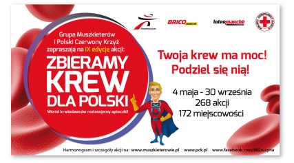 9 lipca w ramach IX edycji kampanii „Zbieramy krew dla Polski”, organizowanej przez Grupę Muszkieterów i Polski Czerwony Krzyż, swoją krew dla pacjentów okręgowych szpitali będą mogli oddać mieszkańcy Koszalina. Po raz pierwszy kampanię wspiera Drużyna#M.