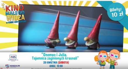 28 kwietnia, godz. 12:00 „Gnomeo i Julia. Tajemnica zaginionych krasnali” (po seansie zajęcia taneczne) Reż.: John Stevenson; gat.: Animacja/Familijny/Przygodowy; USA/Wielka Brytania 2018.