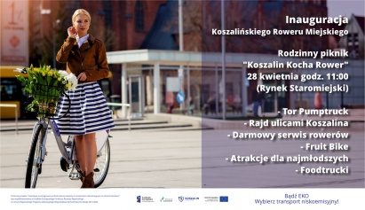 Zapraszamy na inaugurację Koszalińskiego Roweru Miejskiego. Rodzinny piknik "Koszalin Kocha Rower". 28 kwietnia godz. 11:00 -Rynek Staromiejski.