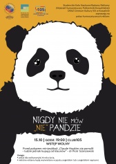 Studenckie Koło Naukowe Badamy Reklamy (Wydział Humanistyczny Politechniki Koszalińskiej) oraz Centrum Kultury 105 w Koszalinie zapraszają na pokaz humorystycznych reklam: Nigdy nie mów „nie” pandzie. 15 października 2018 r. godz. 19:00 Club105 Wstęp wolny