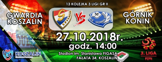 Piłkarze Gwardii Koszalin w sobotę na stadionie im. Stanisława Figasa podejmować będą zespół Górnika Konin. Obie jedenastki odniosły zwycięstwa w minionej kolejce: Gwardia wygrała w Bydgoszczy z Chemikiem (2:1), a Górnik przed własną widownią ograł Polonią Środa Wlkp. (3:1).