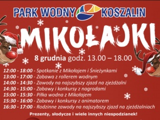 Park Wodny Koszalin zaprasza wszystkich, dużych i małych do wspólnego świętowania. ,,Dla naszych klientów, którzy odwiedzą nas 6 grudnia przygotowaliśmy specjalny prezent w postaci Mikołajkowego biletu indywidualnego 2 godzinnego do strefy rekreacji w promocyjnej cenie 10 zł, który można już zakupić na naszej stronie w sprzedaży online” – informuje Monika Tkaczyk Prezes Zarządu Obiektów Sportowych Sp. z o.o. Kolejna niespodzianka to mikołajkowy upominek w Małym spa.