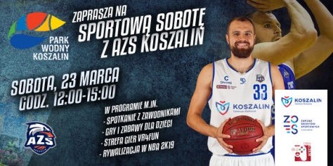 Uwaga, uwaga! W sobotę 23 marca 2019 roku zapraszamy wszystkich kibiców koszykówki do Parku Wodnego Koszalin na Sportową Sobotę z AZS Koszalin. Podczas imprezy przygotowaliśmy dla Państwa szereg atrakcji.