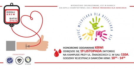 19 listopada br. (wtorek) w kampusie Politechniki Koszalińskiej przy ulicy Śniadeckich będzie można oddać krew. Wydarzenie towarzyszy prowadzonej przez studentów akcji „Wrzuć Miedziaka dla Dzieciaka”.
