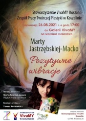 Stowarzyszenie VivaMy Koszalin oraz Zespół Pracy Twórczej Plastyki w Koszalinie zapraszają na wernisaż wystawy malarstwo Marty Jastrzębskiej-Macko. Odbędzie się on 26 bm. o godz. 17≥00 w lokalu stowarzyszenia przy ul. Andersa 26.
