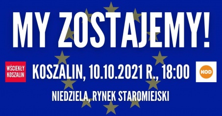 W niedzielę o godz. 18:00 na koszalińskim Rynku Staromiejski rozpocznie się manifestacja mająca na celu sprzeciwi działaniom rządzących i zmierzaacych do wyprowadzenia Polski z UE.Nie ma naszej zgody na #Polexit!