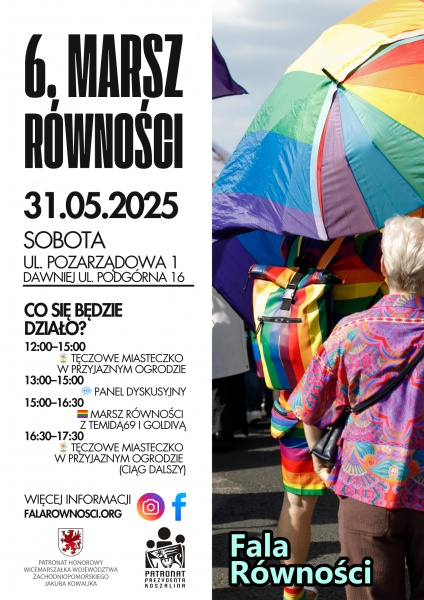 Kolorowo, głośno i pokojowo – tak zapowiada się 6. edycja Marszu Równości w Koszalinie, który wyruszy w sobotę z ulicy Pozarządowej 1 (dawniej Podgórna 16) o godzinie 15:00. Jak co roku, uczestnicy zamanifestują swoje przywiązanie do idei równości, szacunku i wolności – dla wszystkich, niezależnie od orientacji, tożsamości płciowej czy przekonań. Hasła Marszu są jasne: miłość nie wyklucza, równość dotyczy każdego, a wolność to prawo każdego człowieka.