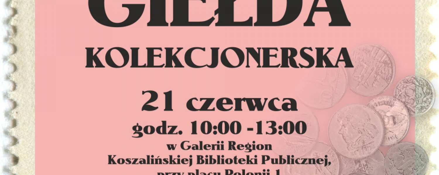 Koszalińska Biblioteka Publiczna zaprasza 21 czerwca (ze względu na organizację festiwalu filmowego "Młodzi i film" wyjątkowo w trzecią sobotę miesiąca) w godz. 10:00 – 13:00 do KBP przy pl. Polonii 1, gdzie kolekcjonerzy z Koszalina i okolic będą prezentować swoje zbiory w ramach Giełdy Kolekcjonerskiej.