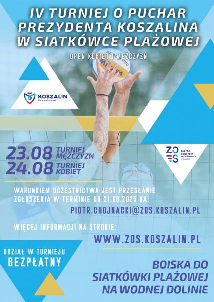 W dniach 23–24 sierpnia 2025 r. na boiskach Wodnej Doliny odbędzie się IV Turniej o Puchar Prezydenta Koszalina w Siatkówce Plażowej. To wydarzenie, które na stałe wpisało się w kalendarz letnich atrakcji sportowych miasta, ponownie zgromadzi miłośników siatkówki i aktywnego wypoczynku.