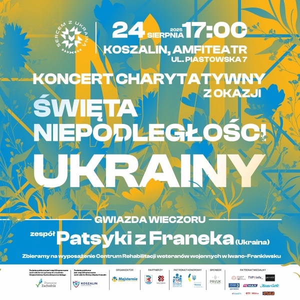 W niedzielę, 24 sierpnia 2025 r. o godz. 17:00, w koszalińskim Amfiteatrze przy ul. Piastowskiej 7 odbędzie się koncert charytatywny „Sercem z Ukrainą”, organizowany z okazji Święta Niepodległości Ukrainy.