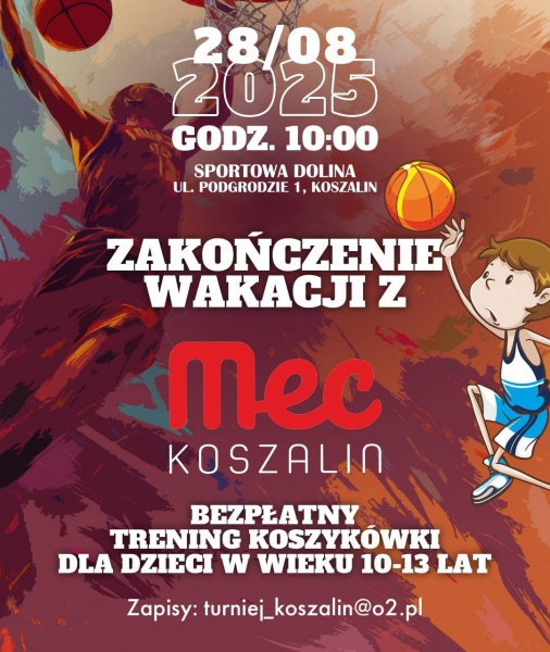 Wszystko co dobre kiedyś się kończy – wakacje również. Już tylko dwa tygodnie dzielą nas od rozpoczęcia nowego roku szkolnego. Zanim jednak zabrzmi pierwszy dzwonek, warto wykorzystać ten czas aktywnie! Miejska Energetyka Cieplna w Koszalinie zaprasza wszystkie dzieci w wieku 10–13 lat na bezpłatne zajęcia koszykówki, które odbędą się 28 sierpnia na terenach Sportowej Doliny w Koszalinie. To świetna okazja, by pożegnać wakacje w sportowym stylu, dobrze się bawić i nauczyć nowych umiejętności.
