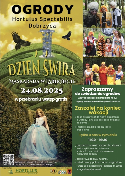 Ogrody Hortulus Spectabilis w Dobrzycy po raz kolejny udowadniają, że koniec wakacji może być kolorowy, zaskakujący i pełen pozytywnego szaleństwa. W niedzielę, 24 sierpnia 2025 roku, odbędzie się tam wyjątkowe wydarzenie – Dzień Świra – maskarada w labiryncie.