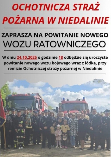 Piątkowe popołudnie upłynie pod znakiem uroczystego powitania nowych wozów ratowniczych w jednostkach Ochotniczych Straży Pożarnych powiatu koszalińskiego.