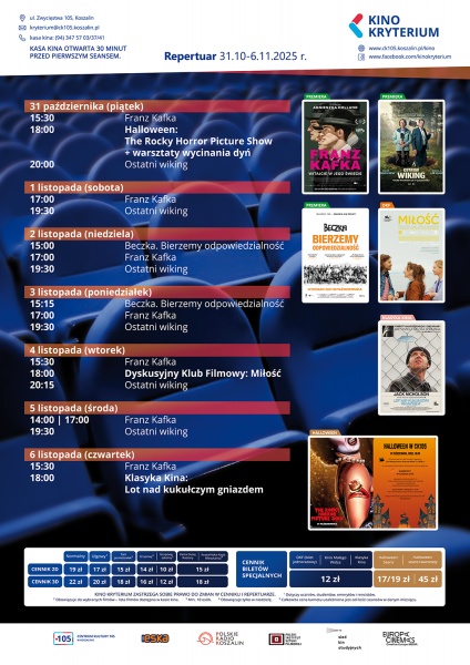 Już w piątek, 31 października 2025 roku, zapraszamy do Kina Kryterium na wyjątkowy, klimatyczny wieczór w stylu Halloween! Czeka na Was kultowy film, dużo śmiechu i odrobina strachu – a dla najmłodszych kreatywne warsztaty z wycinania dyni!
