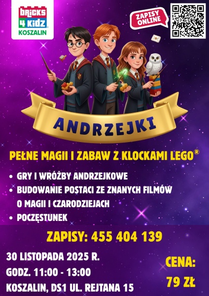 Bricks 4 Kidz Koszalin zaprasza dzieci na wyjątkowe, kreatywne i pełne magii Andrzejkowe Warsztaty z klockami LEGO®. To wydarzenie, które łączy zabawę, wyobraźnię oraz konstrukcyjne wyzwania inspirowane światem czarodziejów.
