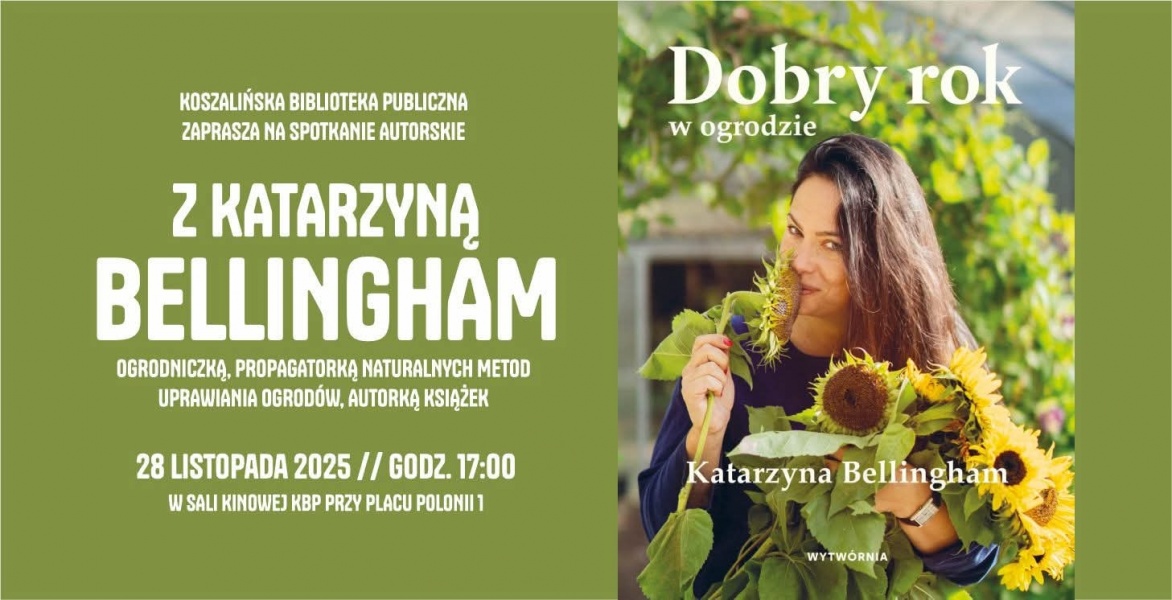 28 listopada 2025 r., godz. 17:00 – Sala kinowa KBP, pl. Polonii 1. Koszalińska Biblioteka Publiczna ogłosiła kolejne wyjątkowe wydarzenie dla wszystkich miłośników zieleni i naturalnego ogrodnictwa. Już 28 listopada odbędzie się spotkanie autorskie z Katarzyną Bellingham – jedną z najbardziej cenionych propagatorek naturalnych metod uprawy ogrodów w Polsce.