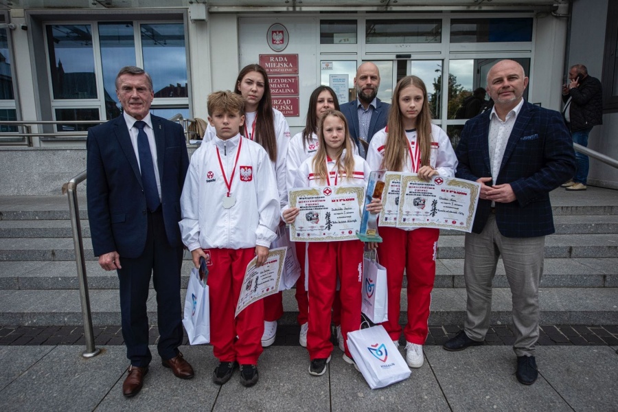 W gabinecie zastępcy prezydenta Sebastiana Tałaja gościli dziś prawdziwi wojownicy z Koszalina – młodzi sportowcy, którzy z ogromnym sukcesem reprezentowali nasze miasto podczas Mistrzostw Polski Karate Kyokushin Młodzieżowców, Młodzików i Kadetów w Świnoujściu. W zawodach wzięło udział ponad 140 uczestników – zawodników, trenerów i sędziów z 39 klubów z całej Polski, tworząc wyjątkową atmosferę sportowej rywalizacji, przyjaźni i ducha Kyokushin.