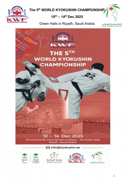 Z dumą i radością informujemy, że Koszaliński Klub Karate Kyokushin będzie reprezentowany na V Mistrzostwach Świata Karate Kyokushin KWF, które odbędą się w dniach 10–14 grudnia 2025 roku w stolicy Arabii Saudyjskiej – Rijadzie. To najważniejsze zawody w światowym kalendarzu Kyokushin, gromadzące najlepszych zawodników z kilkudziesięciu krajów.