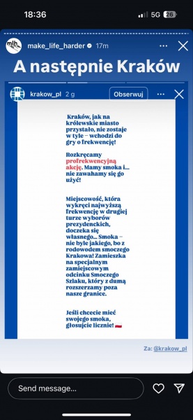 Make Life Harder i Marszał wierzą, że głosowanie może być trendy. Że może być wyzwaniem społecznym, zabawą, gestem wspólnoty. A nagrody – czy to wóz strażacki, czy smok – mają być przypomnieniem, że warto zrobić coś razem. Nawet jeśli zaczyna się to od zdjęcia z ciocią spod lokalu wyborczego.