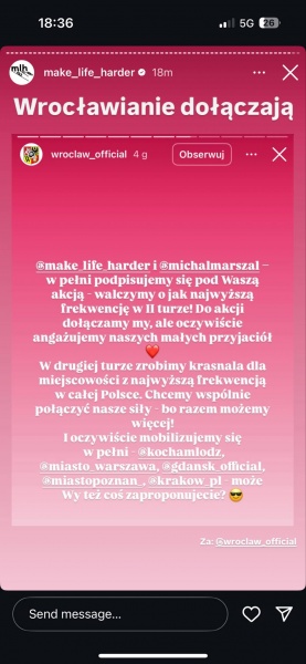 Za całą ogólnopolską profrekwencyjną akcją stoją Make Life Harder (czyli Jakobe Mansztajn) oraz Michał Marszał – duet, który na Instagramie ogląda ponad 2 miliony osób, a miesięcznie generuje... 330 milionów wyświetleń. Ich siłą są memy, ironia i bardzo konkretna społeczna sprawczość.