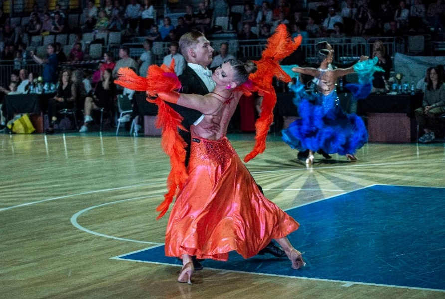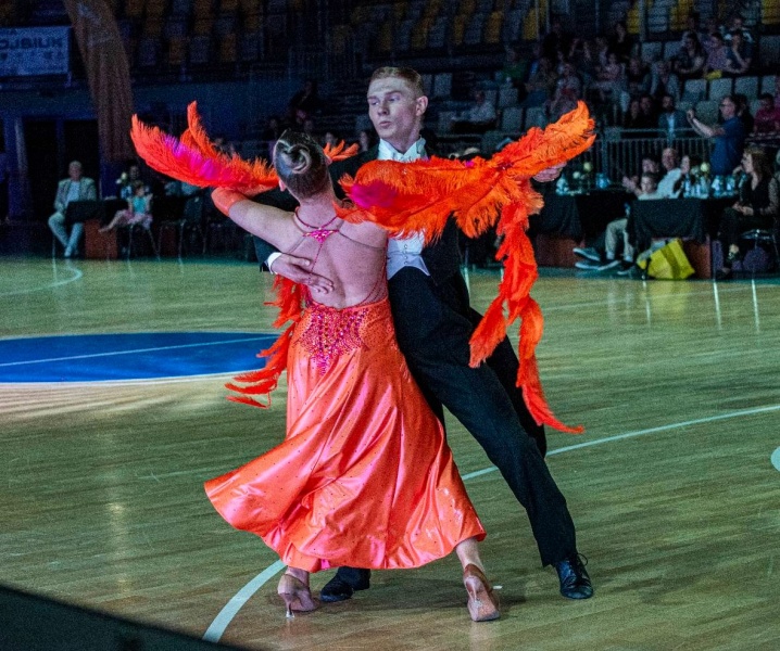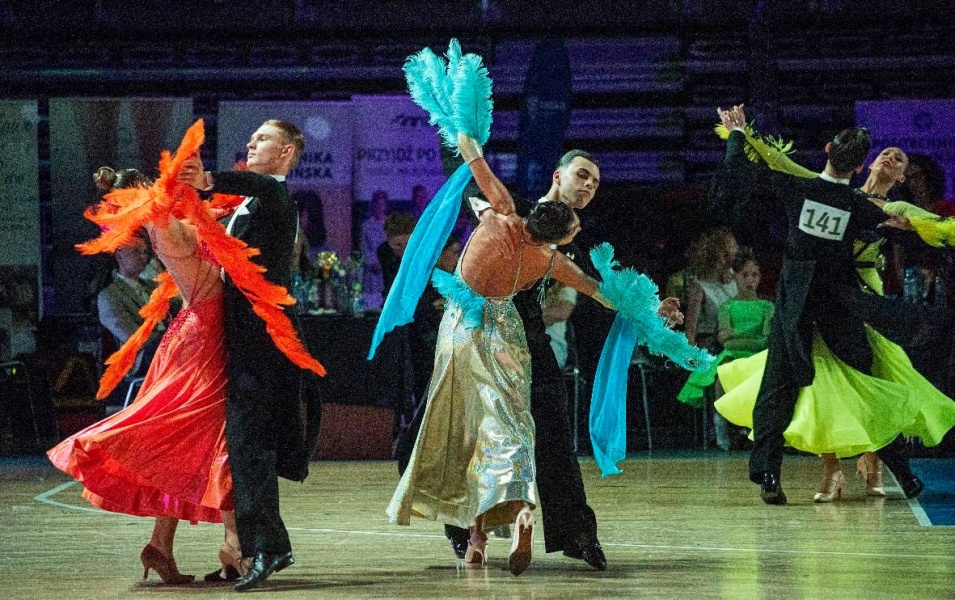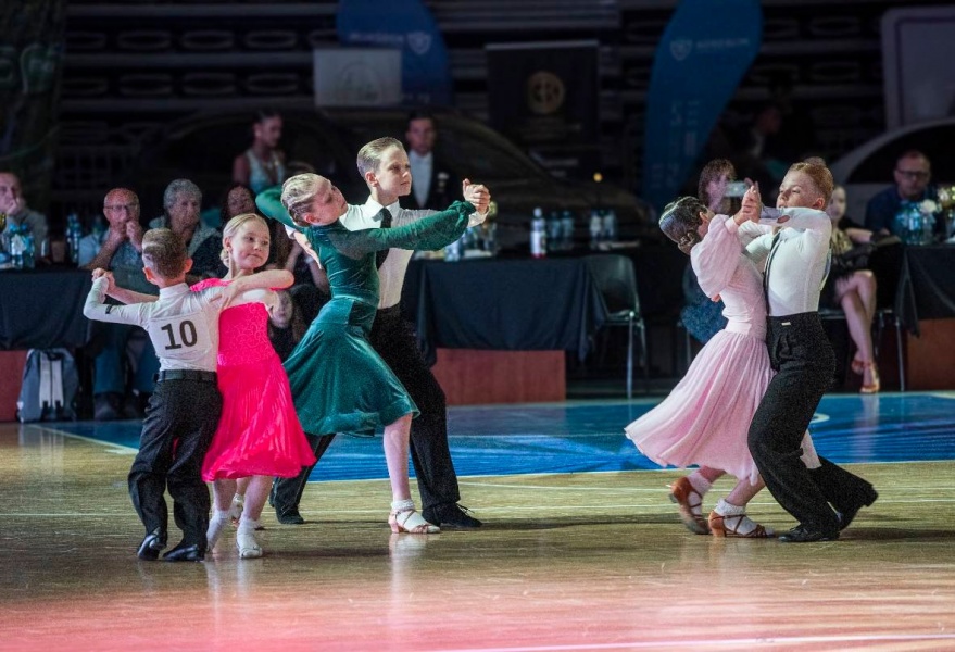 Po południu nadszedł czas na bardziej widowiskową i emocjonującą część dnia – eliminacje par w ramach Mistrzostw Polski Dzieci i Juniorów Młodszych. Występy oceniane były przez licencjonowanych sędziów, a poziom taneczny wydarzenia budził uznanie nie tylko ekspertów, ale też widzów, którzy szczelnie wypełnili trybuny. Każdy taniec – od walca wiedeńskiego po sambę – był prawdziwym pokazem techniki, rytmu i ogromnej pracy włożonej przez uczestników i ich trenerów.