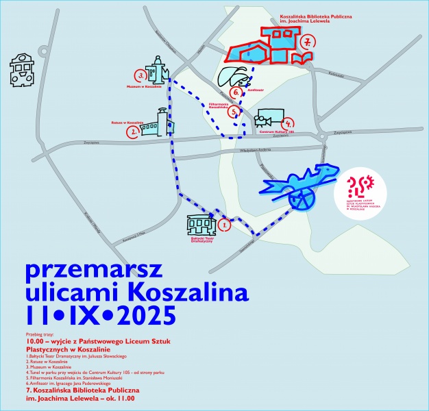 Pochód rozpocznie się o godz. 10:00 przed siedzibą szkoły, a jego trasa poprowadzi przez najważniejsze miejsca kultury w Koszalinie. Na każdym przystanku odczytane zostaną okolicznościowe sentencje, podkreślające znaczenie sztuki i edukacji artystycznej w życiu miasta i regionu.