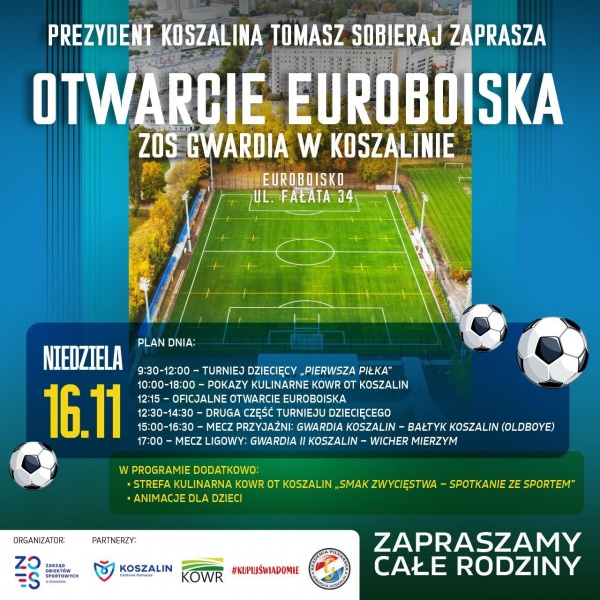 Prezydent Koszalina, Tomasz Sobieraj, zapowiada, że nowe euroboisko stanie się miejscem treningów zarówno dla piłkarzy, jak i rugbystów. Obiekt o wymiarach 100 x 64 metry został zaprojektowany z myślą o wszechstronnym wykorzystaniu i całorocznym użytkowaniu.