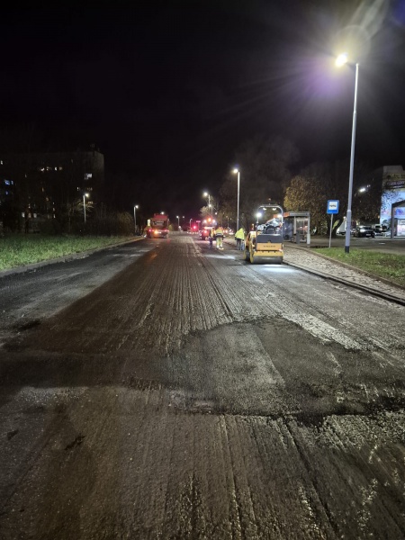 W ostatnich dniach w godzinach nocnych drogowcy zajmowali się usuwaniem zużytej nawierzchni, a teraz ruszyło układanie nowej masy bitumicznej. Wszystko po to, by ograniczyć utrudnienia w ciągu dnia i skrócić czas trwania remontu.