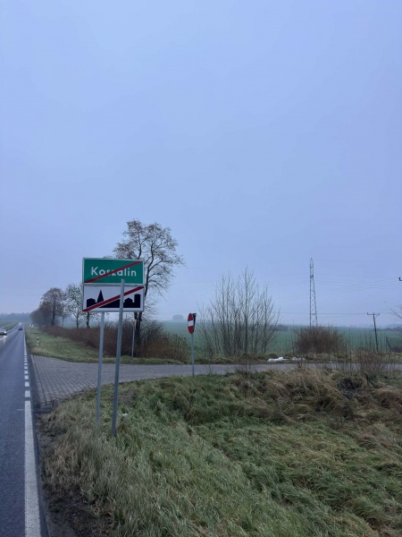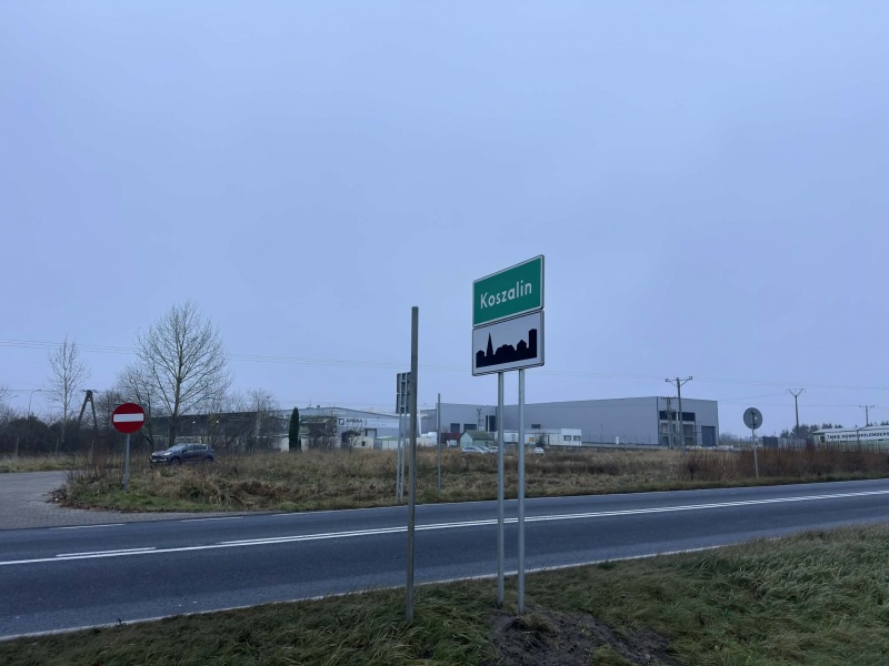 Znak końca terenu zabudowanego przesunięto znacznie dalej — aż w okolice stacji Grupa DBK Koszalin.