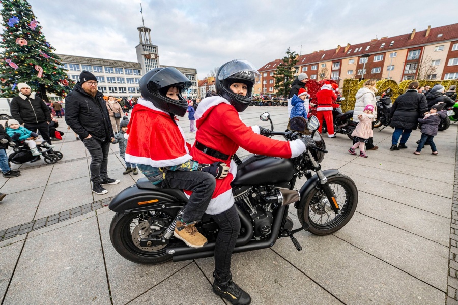 W sobotnie przedpołudnie koszaliński rynek stał się areną motocyklowego święta. Setki mieszkańców przyszły zobaczyć paradę jednośladów przystrojonych światełkami, bombkami i mikołajkowymi elementami. Jedni robili zdjęcia, inni nagrywali przejazd, ale wszyscy zgodnie przyznawali – to wydarzenie, które tworzy klimat miasta w grudniu.