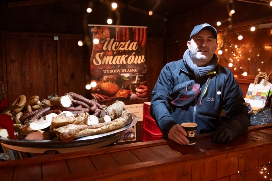 W sobotę 20 grudnia jarmark zaprosi szczególnie tych, którzy lubią, gdy jedzenie opowiada historię. Od 13.00 do 15.00 Łukasz Gładysiak poprowadzi pokaz „Okupacyjna grzybowa według receptury z 1941 r.”, a więc rozgrzewająca zupa, która ma w sobie i smak, i pamięć. Od 17.00 do 19.00 na scenie pojawią się wspólnie Maciej Jeleń i Marta Klim z pokazem „Piernik na wytrawnie, czyli staropolski sandwich w nowoczesnej odsłonie”. Konferansjerem będzie Robert Bochenko. To propozycja dla tych, którzy lubią klasykę, ale chętnie zobaczą ją w nowym świetle. Dzień zakończy koncert Bartosza Czai od 19.00 do 20.00 w ramach CK105.