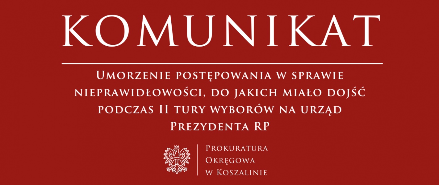 Prokuratura Okręgowa w Koszalinie poinformowała o umorzeniu postępowania dotyczącego nieprawidłowości, do jakich miało dojść podczas II tury wyborów na urząd Prezydenta RP, która odbyła się 1 czerwca 2025 roku. Jak wynika z komunikatu, postępowanie dotyczyło podejrzenia bezprawnego przetwarzania danych osobowych oraz utrudniania głosowania jednej z osób uprawnionych – M.G.